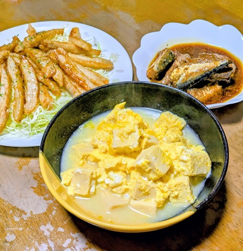 お財布にも優しい~♪厚揚げとエノキのエビチリ風&銀だことチョコ