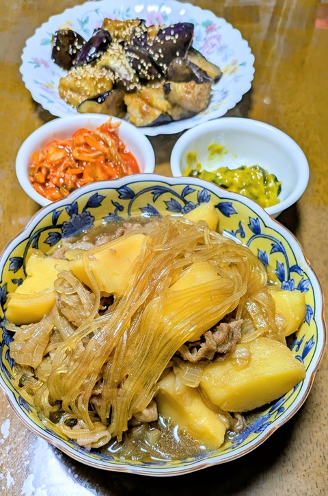 スペアリブの味噌煮込みと長いもの鉄板焼の晩ご飯と アゲハ蝶♪