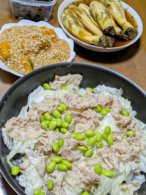 秋鮭のちゃんちゃん焼き風の晩ご飯と キバナコスモスの花♪