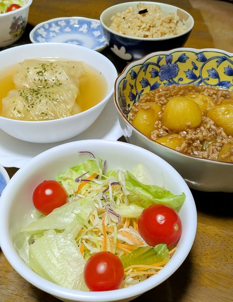 地味目の和食の晩ごはんと「財布がない」」by JUNA夫