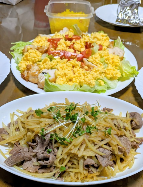 青椒肉絲・タコの唐揚の晩ご飯と コウモリランの冬支度♪