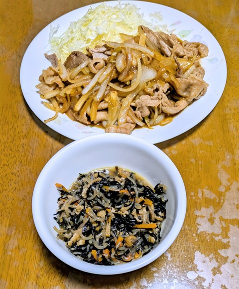 白菜と豚肉のしょうが煮、かぶの葉のふりかけなど(レシピリンクあります)
