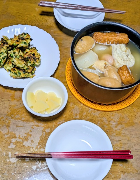 とん平焼・手羽先焼の晩ご飯と イソギクの花♪